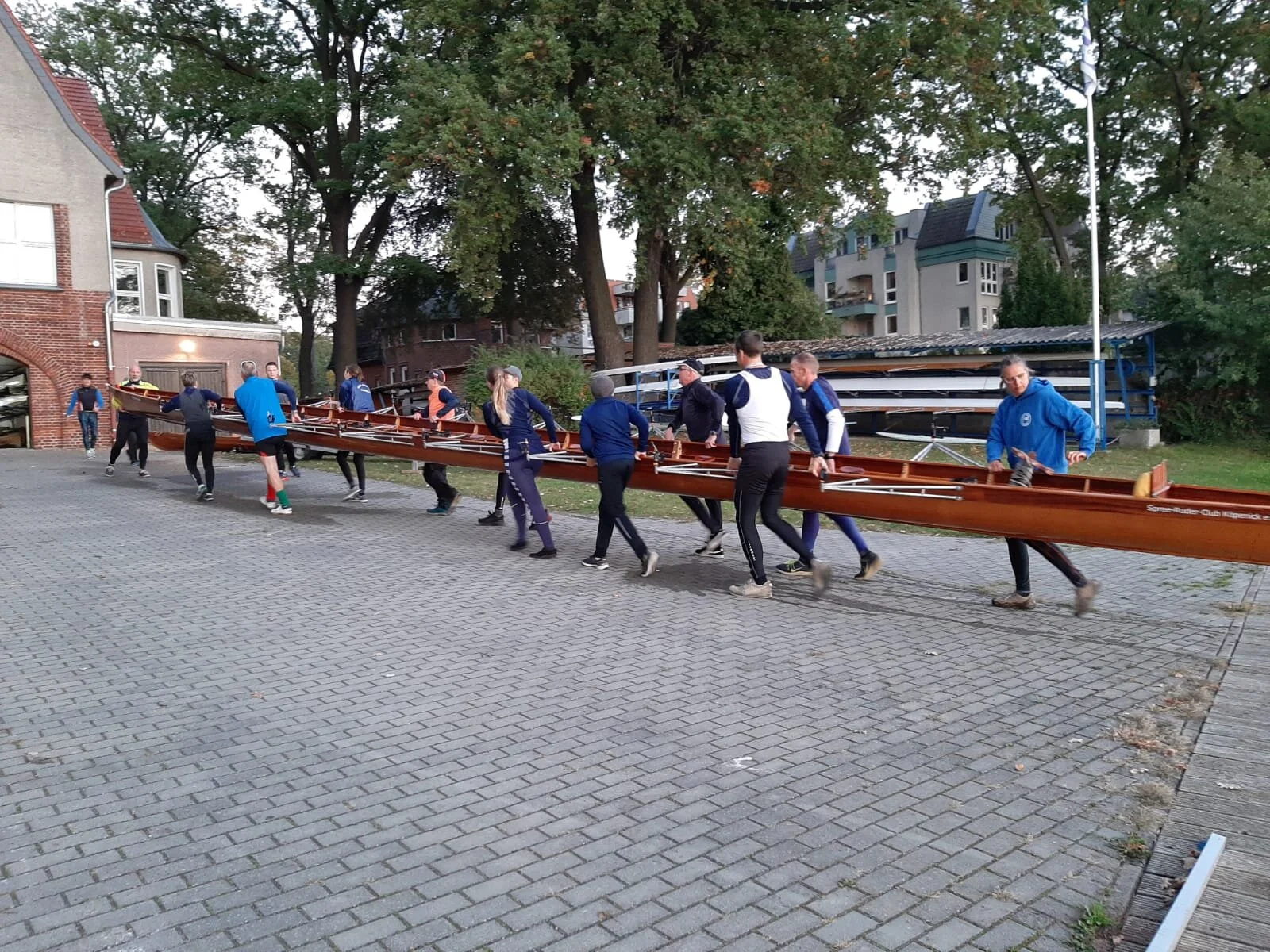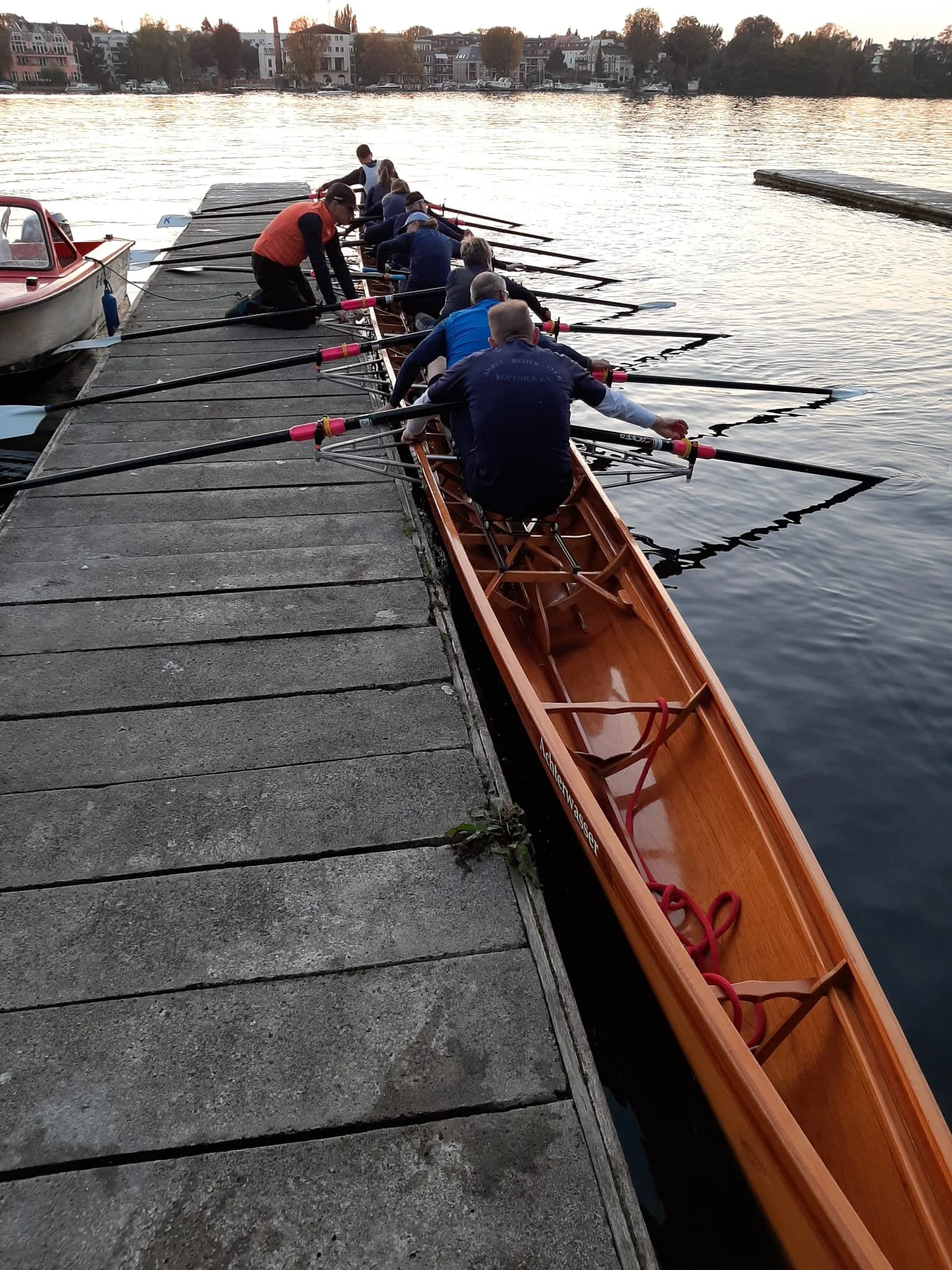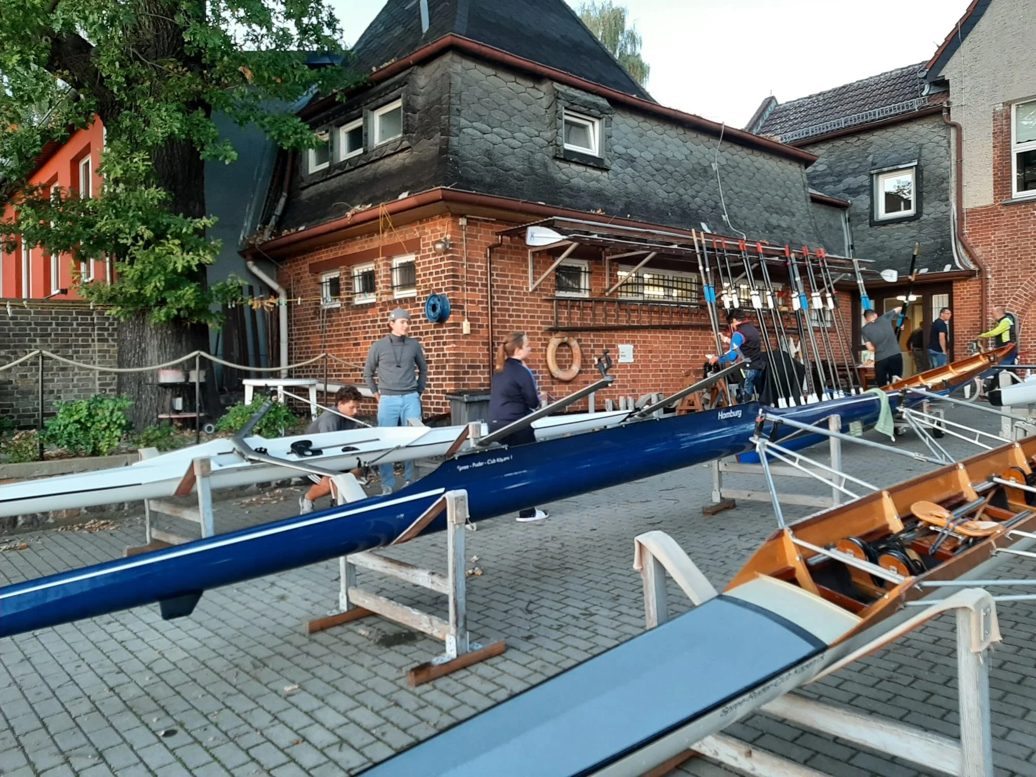 Es ist Freitag, der 08.10.2021. Die Saison ist fast zu Ende und es fühlt sich ein wenig an, wie das letzte Aufbäumen vor dem Winter. Der Bootsplatz ist voll, viele Ruderfreunde sind heute auf dem Bootsplatz bzw. auf dem Wasser unterwegs. Es werden Boote ins Wasser gelassen und andere Boote kommen gerade wieder zurück. Jeder weiß was zu tun ist, jeder packt mit an, wenn es darum geht ein Boot aus der Halle zu holen, sauber zu machen oder ein Boot aus dem Wasser zu ziehen.